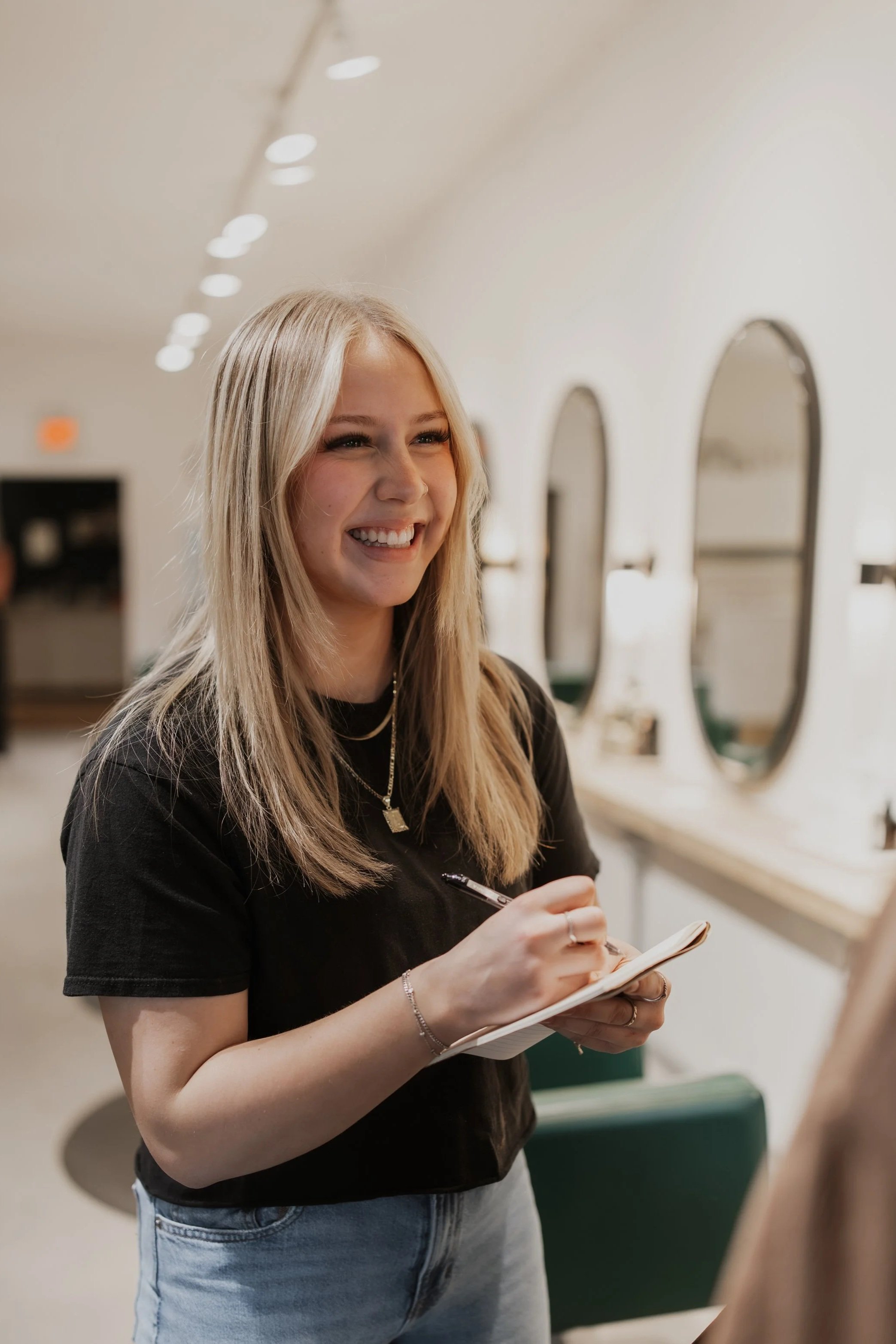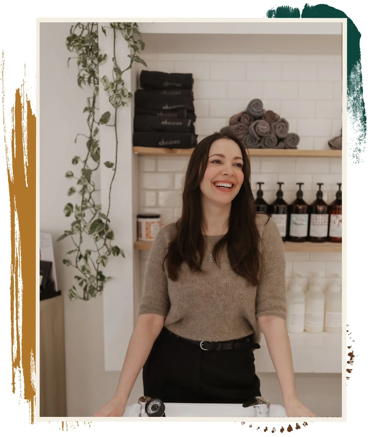 Hello! I’m here to help get you checked in, feeling welcome, and settled in at the salon. If you need a hand with booking, don’t hesitate to give us a call, I’m always happy to help. I help keep the salon organized and curate fresh playlists to set the vibe while you’re here.
